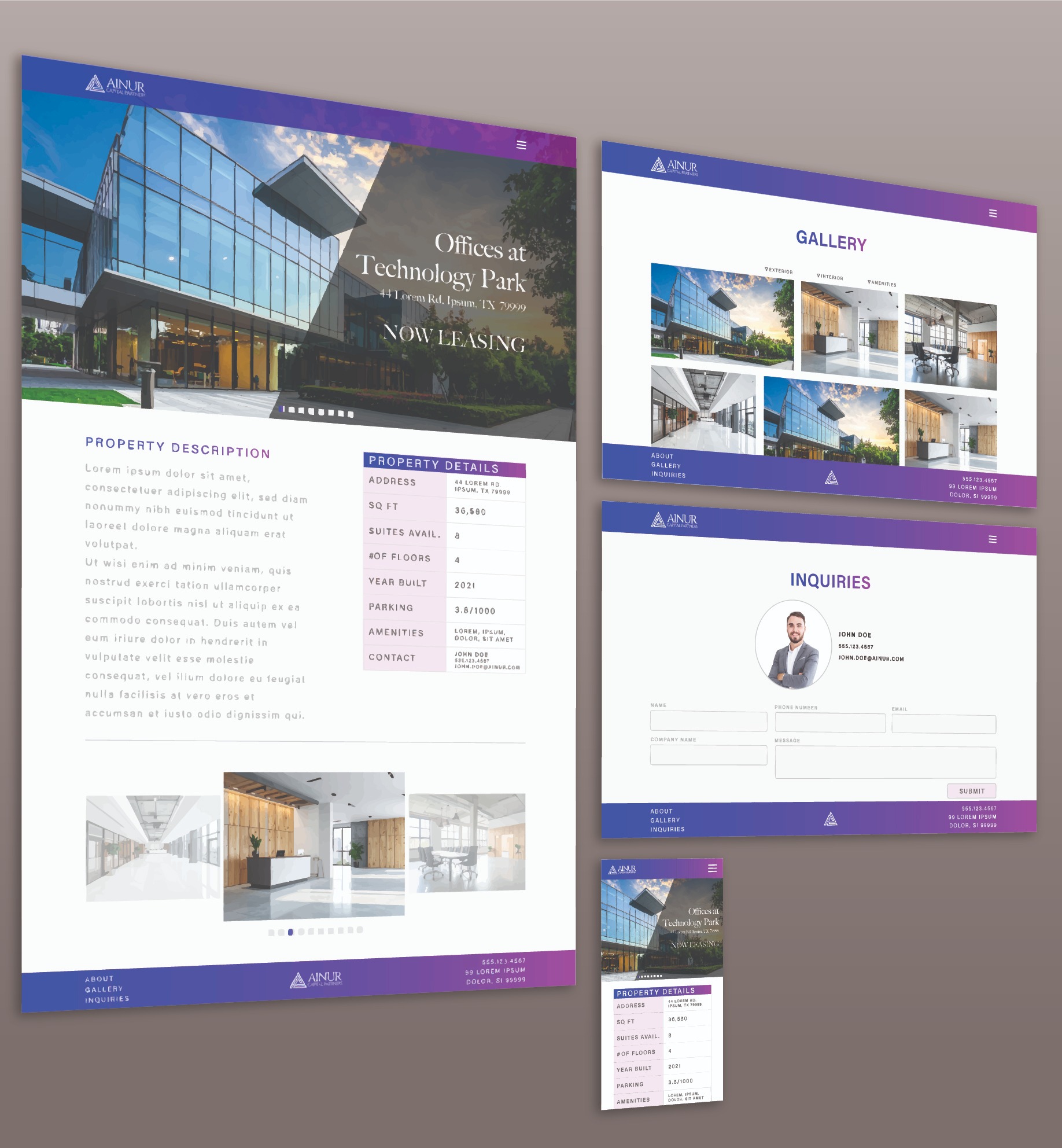 Content-rich design, to include lots of information about space(s) available, images, floorplan, and leasing information.